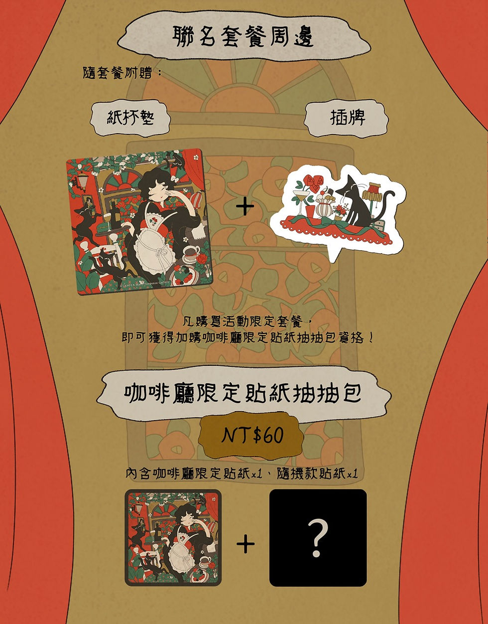隨套餐附贈 TASOYA Maro 聯名珈琲主題杯墊&插牌乙組。
